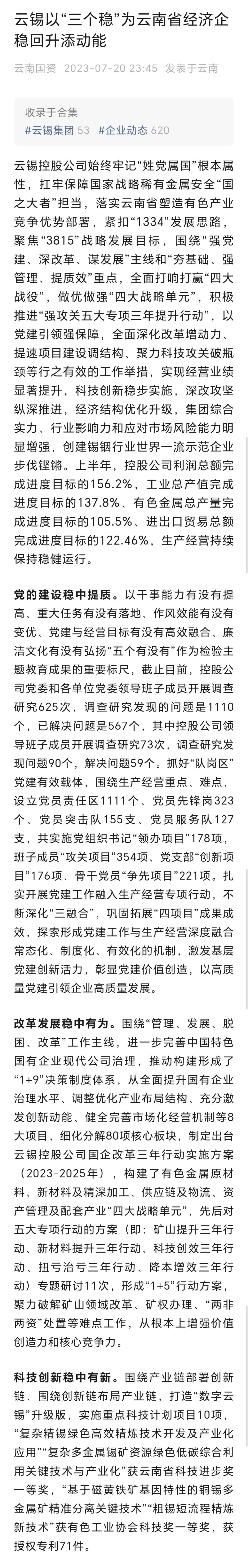 云南國資:云錫以“三個穩”為云南省經濟企穩回升添動能