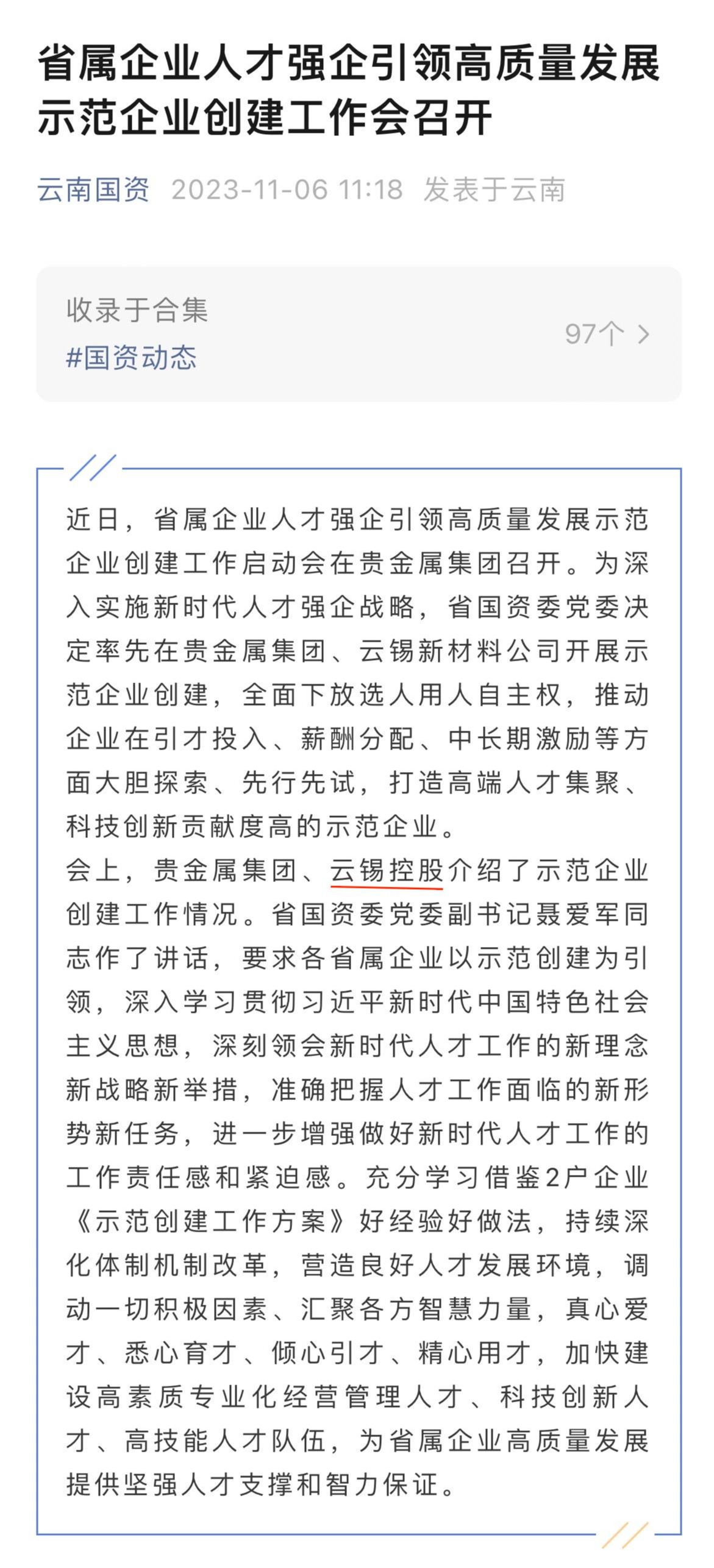 云南國資:省屬企業人才強企引領高質量發展示范企業創建工作會召開