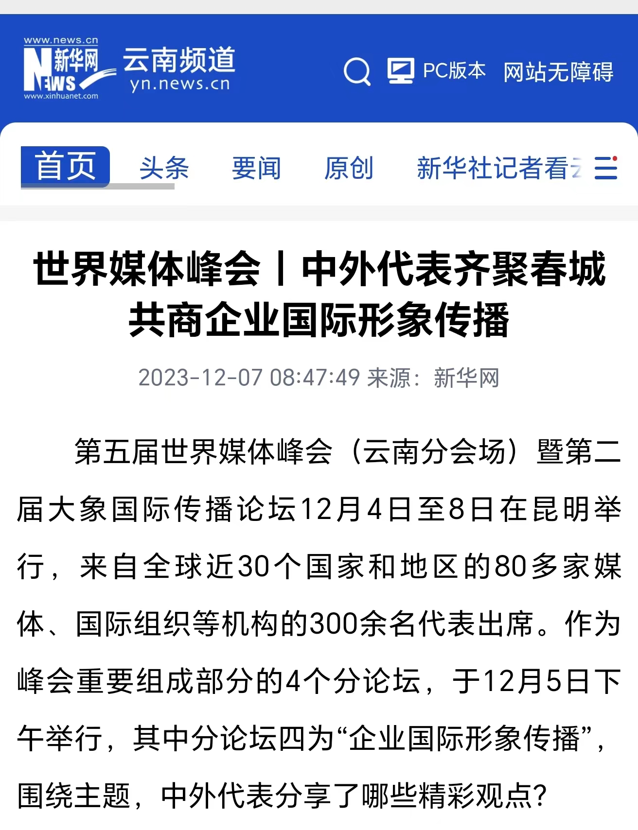 新華網:中外代表齊聚春城 共商企業國際形象傳播