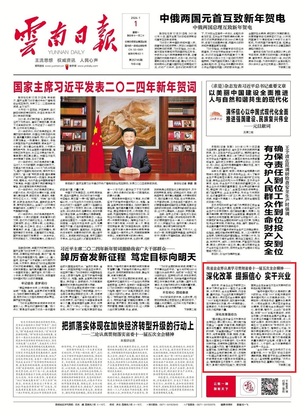 連日來,我省各企業(yè)干部職工認(rèn)真學(xué)習(xí)貫徹省委十一屆五次全會(huì)精神。大家表示,全會(huì)主題鮮明、內(nèi)容豐富、重點(diǎn)突出,為企業(yè)改革發(fā)展指明了方向,要深入貫徹落實(shí)全會(huì)精神,錨定“3815”戰(zhàn)略發(fā)展目標(biāo),在改革中發(fā)展,在發(fā)展中深化改革,進(jìn)一步提振信心,奮勇前行,為走好中國式現(xiàn)代化云南實(shí)踐之路貢獻(xiàn)力量。