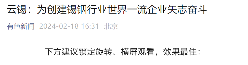 有色新聞:云錫為創建錫銦行業世界一流企業矢志奮斗