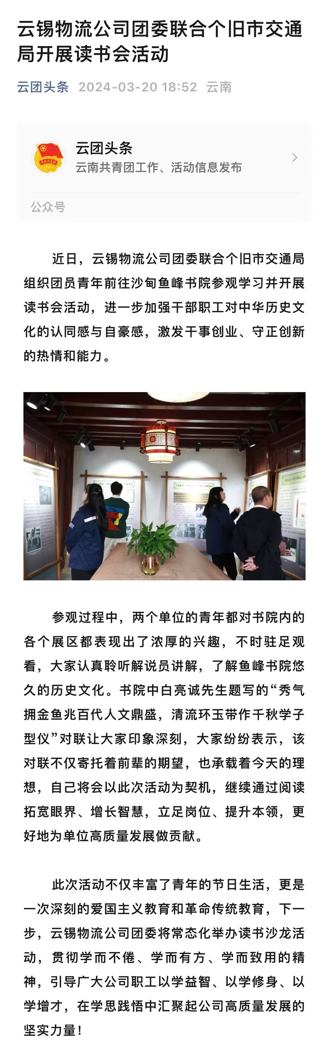 云團頭條:云錫物流公司團委聯合個舊市交通局開展讀書會活動