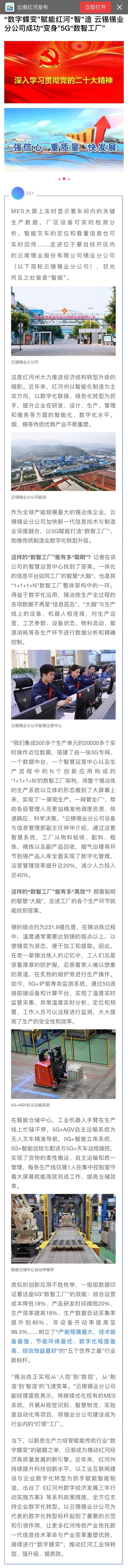云南紅河發布:“數字蝶變”賦能紅河“智”造 云錫錫業分公司成功“變身”5G“數智工廠”