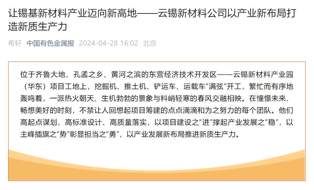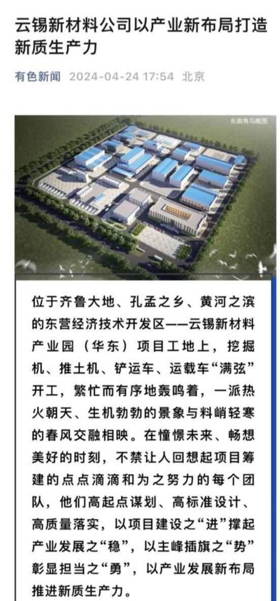 云南政協報、中國有色金屬報、有色新聞:云錫新材料公司以產業新布局打造新質生產力