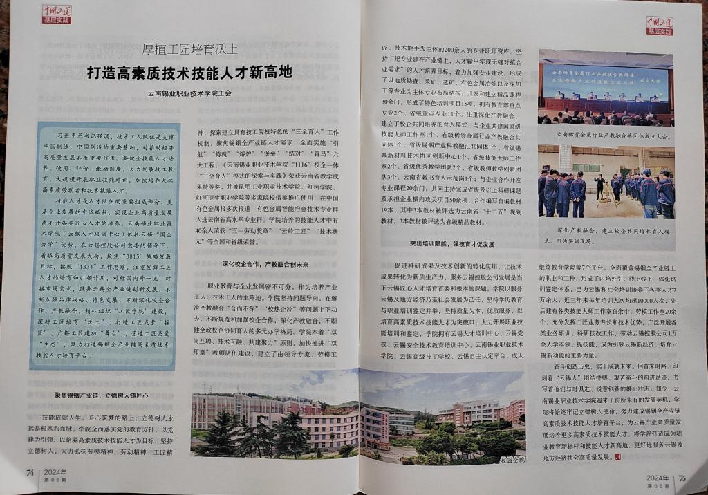 中國工運:云錫職院打造高素質技術技能人才新高地