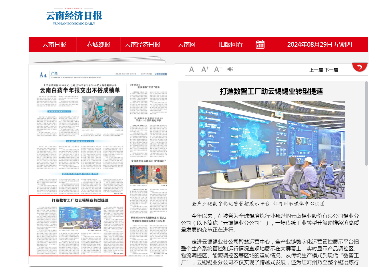 云錫錫業分公司的成功轉型只是紅河州傳統產業依托新一代信息技術革命與產業變革重塑優勢的一個縮影。近年來,紅河州出臺相關政策措施,全方位支持企業數字化轉型,不僅為企業提供資金和技術支持,還為企業搭建平臺、整合資源,幫助企業解決在轉型過程中遇到的各類問題。紅河州的傳統產業紛紛開始探索數字化轉型之路,以工業互聯網建設與企業數字化轉型為抓手賦能智能制造,推動紅河州工業實現快轉型、強升級、提質效,助力經濟發展不斷邁向新高度。
