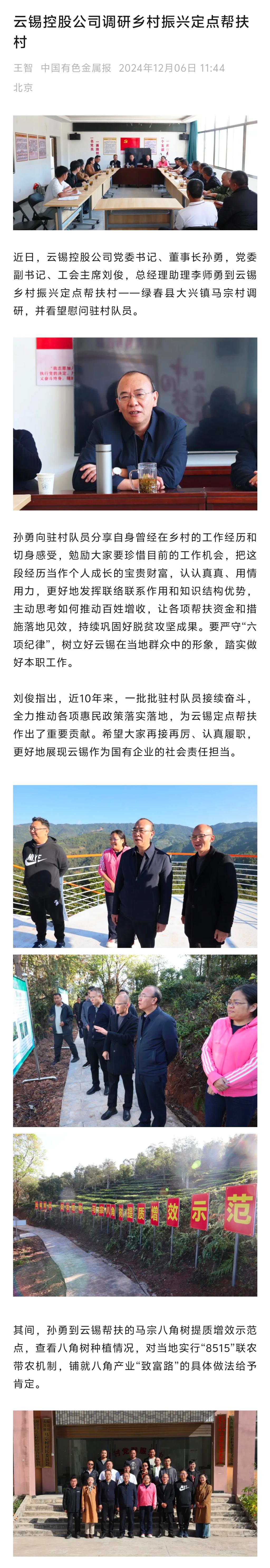 中國有色金屬報:云錫控股公司調研鄉村振興定點幫扶村