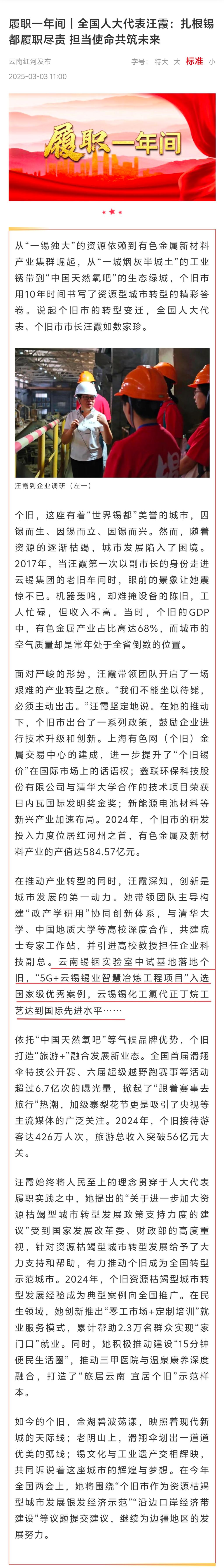 云南紅河發布:全國人大代表汪霞——扎根錫都履職盡責 擔當使命共筑未來