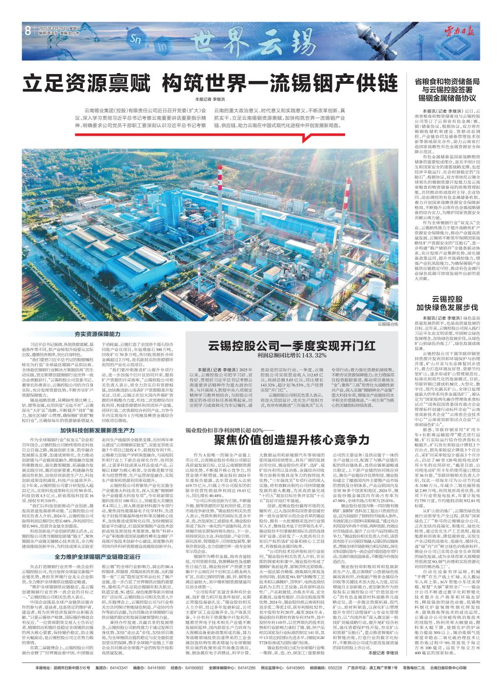 云錫控股公司一季度實(shí)現(xiàn)開門紅