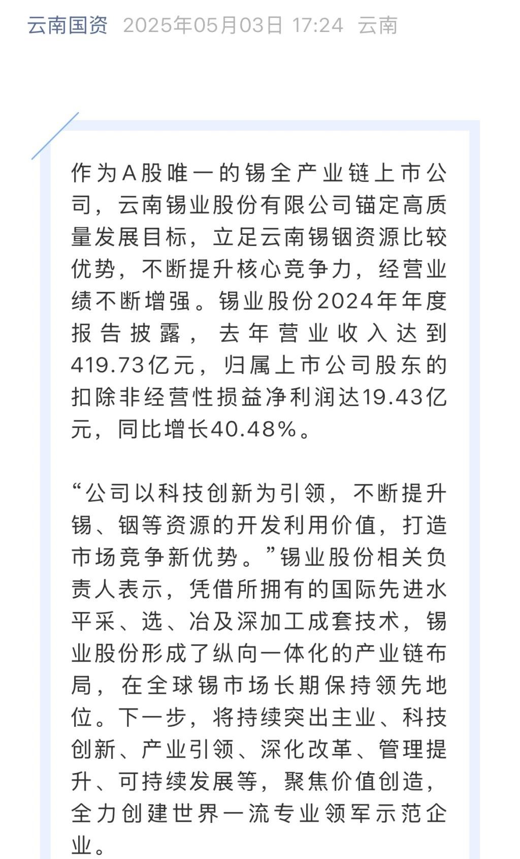 錫業股份扣非凈利潤增長超40%——聚焦價值創造提升核心競爭力