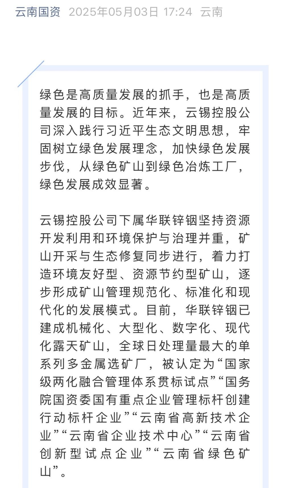 云錫控股:立足資源稟賦 構筑世界一流錫銦產供鏈