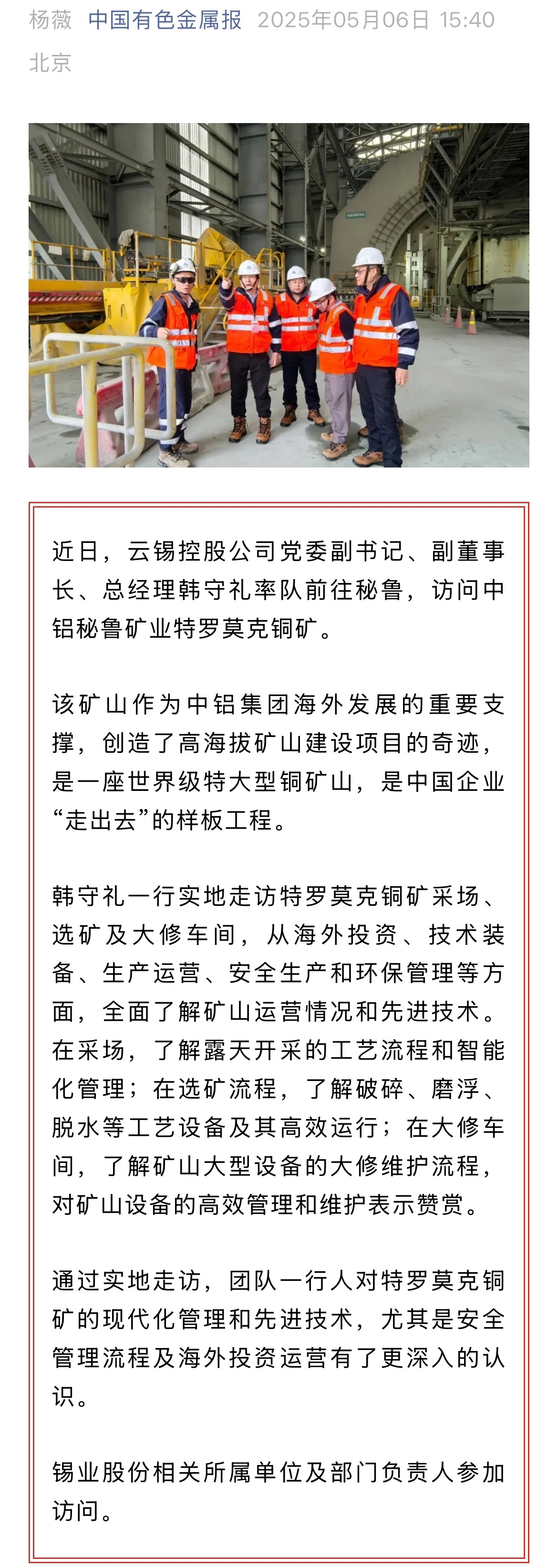 云錫控股公司一行訪問中鋁秘魯礦業特羅莫克銅礦