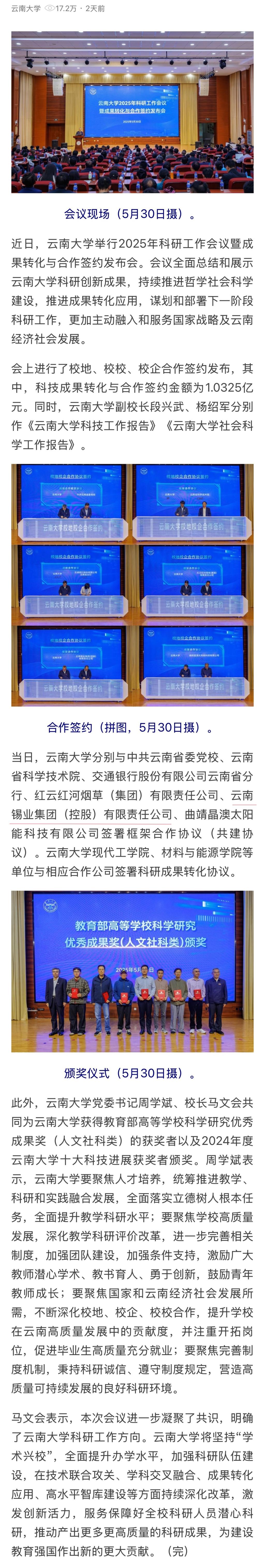 新華網:云南大學舉行2025年科研工作會議暨成果轉化與合作簽約發布會