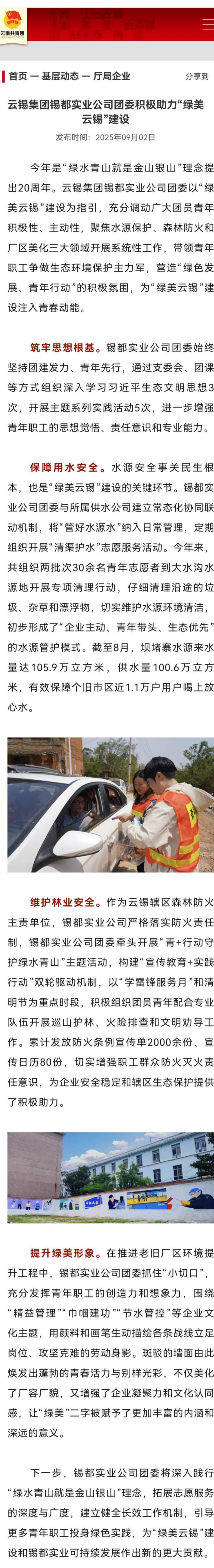 云南共青團:錫都實業公司團委積極助力“綠美云錫”建設