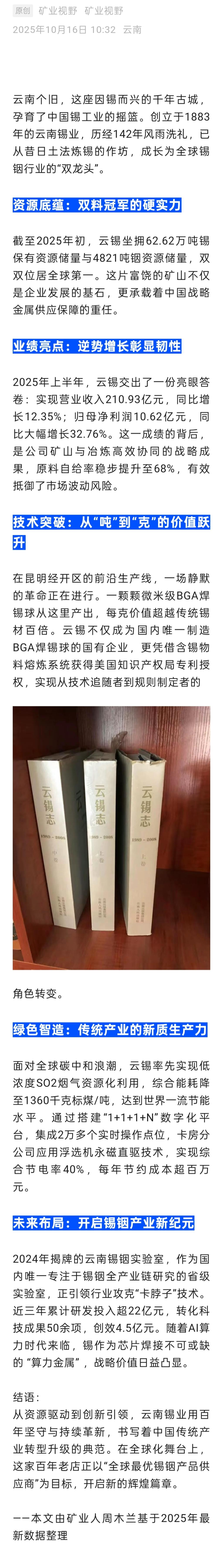 礦業視野:云南錫業——全球錫銦巨頭的革新之路與2025新篇章