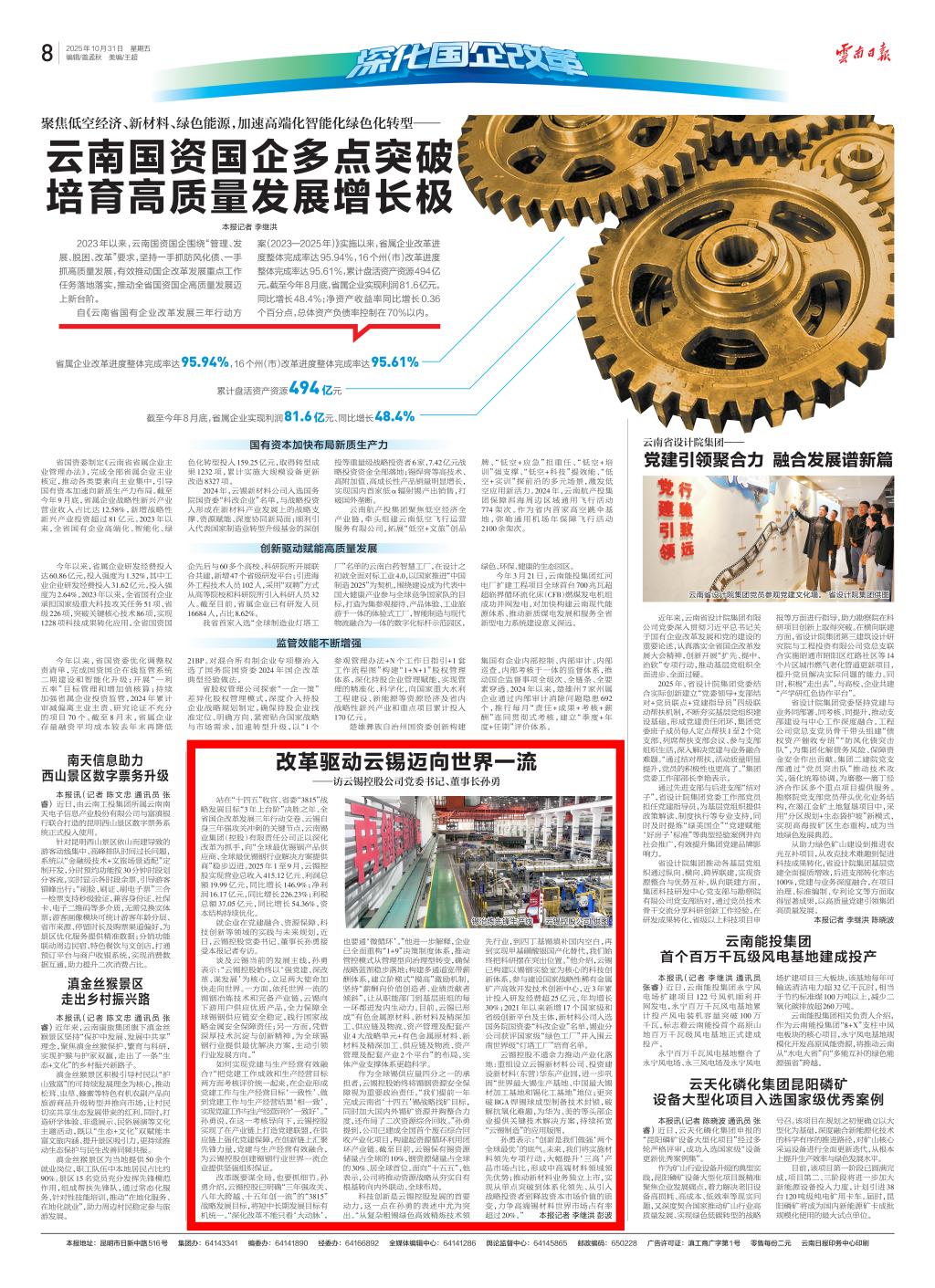 就企業在黨建融合、資源保障、科技創新等領域的實踐與未來規劃,近日,云錫控股公司黨委書記、董事長孫勇接受本報記者專訪。