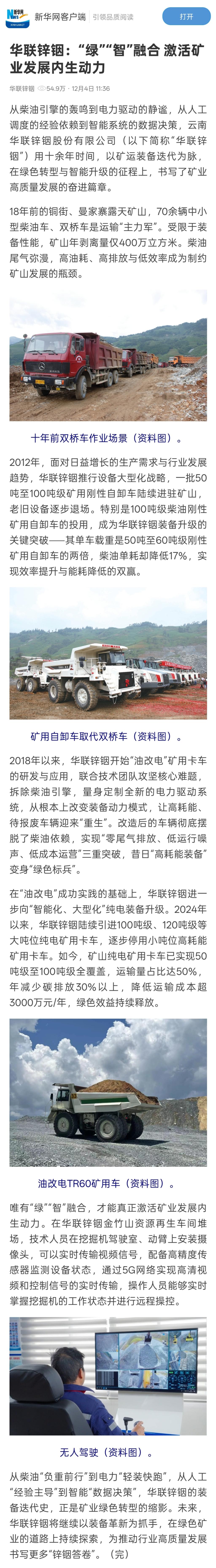 新華網客戶端:華聯鋅銦:“綠”“智”融合 激活礦業發展內生動力