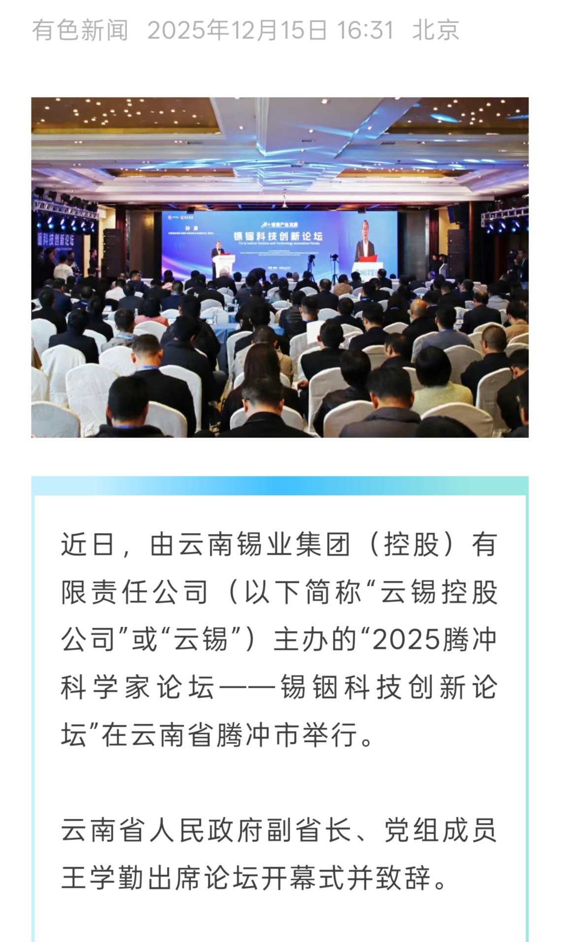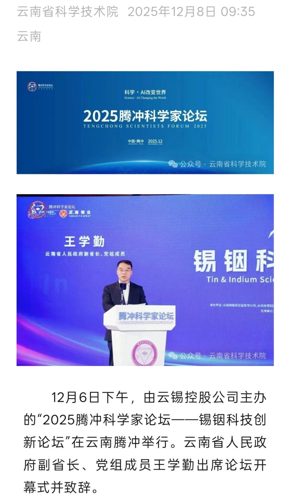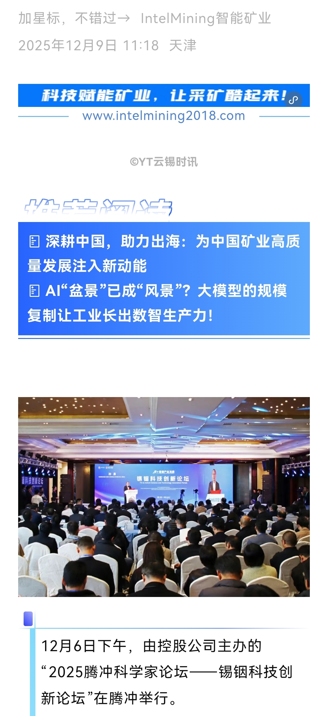 來源:云南日報、云南省科學技術院、騰沖發布、騰沖科學家論壇、IntelMining智能礦業、科技彩云南、有色新聞