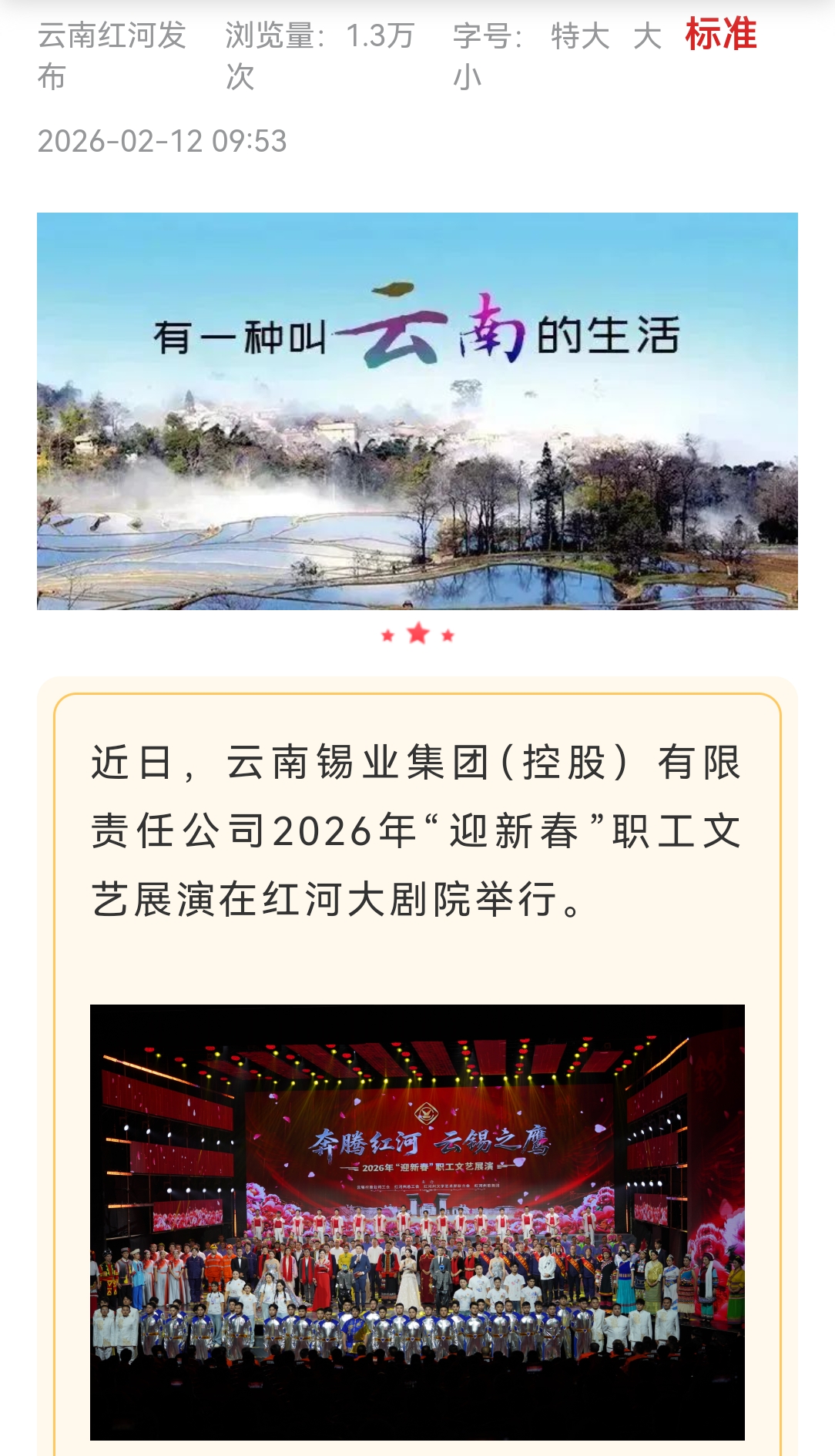 鏈接:(紅河日報)、(云嶺職工)、(紅河發布)、(紅河州總工會)、(云南省紅河大劇院發布)