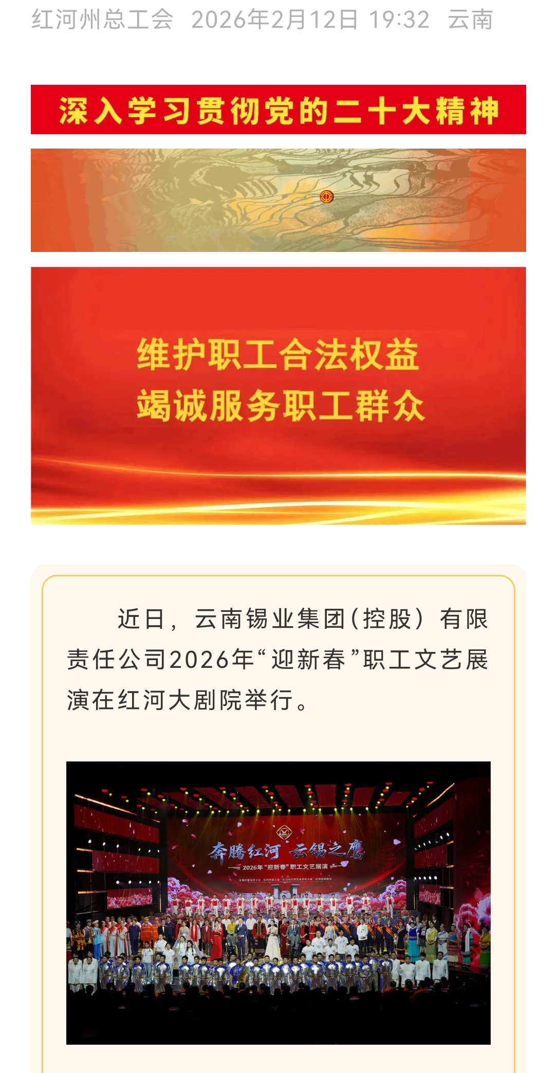 來源:紅河日報、云嶺職工、紅河發布、紅河州總工會、云南省紅河大劇院發布