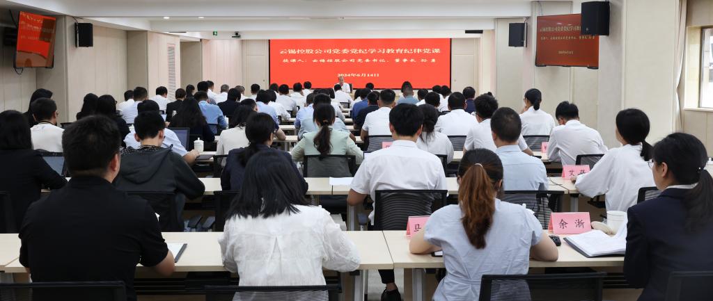 6月14日下午,控股公司黨委在昆明總部14樓會議室開展黨紀學習教育紀律黨課。控股公司黨委書記、董事長孫勇作題為《知紀于心 立紀于身 化紀于行》的黨紀學習教育專題黨課。
