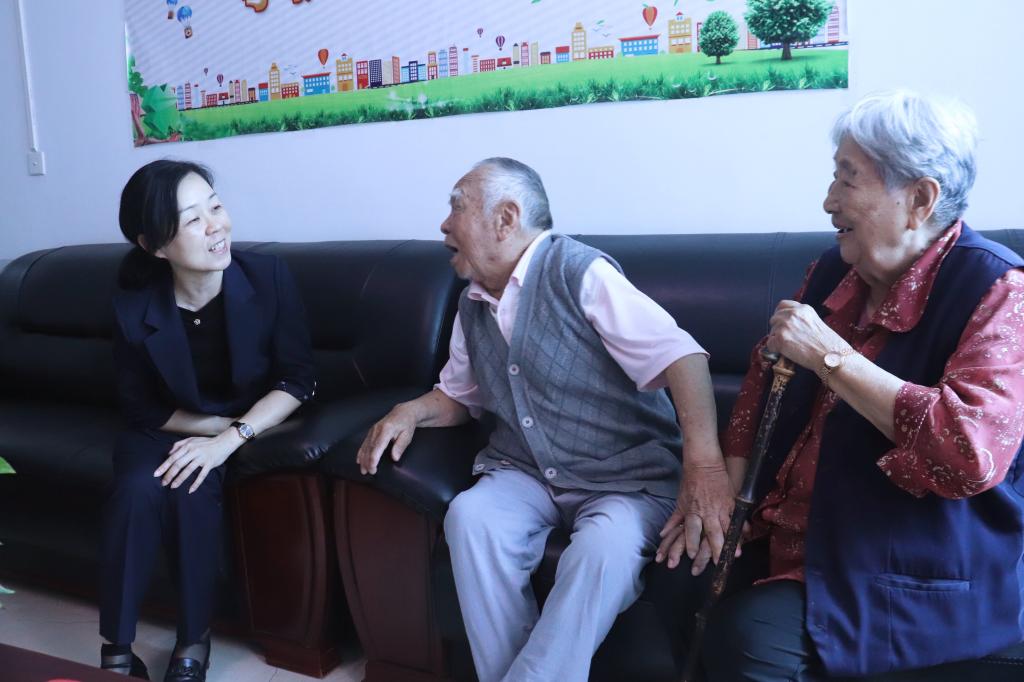控股公司紀委書記、監察專員蘭菊走訪慰問老黨員榮天順(唐夢天/攝)