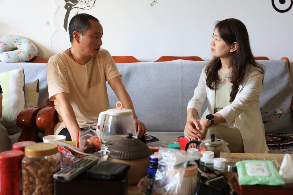 控股公司紀委書記、監察專員蘭菊走訪慰問職業學院困難黨員沈朝瑋(唐夢天/攝)