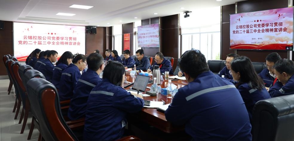 連日來,控股公司黨委領(lǐng)導(dǎo)班子成員分別到各單位宣講黨的二十屆三中全會(huì)精神,引導(dǎo)廣大黨員干部職工把思想和行動(dòng)統(tǒng)一到全會(huì)精神上來,把智慧和力量凝聚到落實(shí)改革發(fā)展各項(xiàng)目標(biāo)任務(wù)上來,聚力打造全球最優(yōu)錫銦產(chǎn)品供應(yīng)商和全球最優(yōu)錫銦行業(yè)解決方案提供商,為推進(jìn)中國式現(xiàn)代化云南實(shí)踐作出云錫更大貢獻(xiàn)。