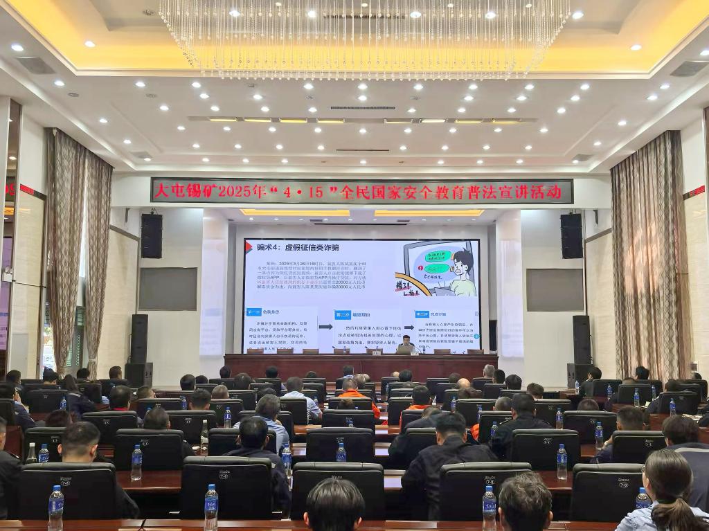 大屯錫礦聯合個舊市公安局開展普法宣傳活動。個舊市公安局反詐中心主任趙航通過案例解析,詳細介紹電信網絡詐騙手段及防范措施,提醒職工提高警惕,并指導安裝“國家反詐中心”App。大屯派出所尹鄰陶和張馨雨警官講解有關法律法規,普及國家安全知識,強調維護國家安全的重要性。(朱勇)