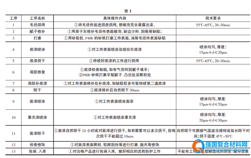 涂裝工藝一由于毛坯件氣泡、暗坑會存在無法清除到位的情況,面漆采用的是自干及短時間烘烤工藝,在夏季高溫長期暴曬下,會有一定概率存在氣泡重復出現的缺陷,導致玻璃鋼面漆需要進行修復處理。