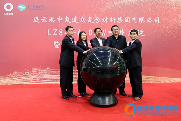 2018年12月27日,中復連眾集團在連云港舉行LZ84-6.0MW葉片啟運暨B75葉片下線儀式。中國建材集團副董事長李新華,連云港市人民政府副市長徐家保,上海電氣風電集團總裁謝雪瓊,中國復材集團黨委書記、董事長、總經理劉標,連云港經濟技術開發區黨工委副書記、常務副主任胡傳宏共同啟動水晶球,見證這一歷史時刻。
