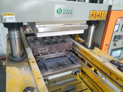 采用平衡雙側缸壓緊中模,防止粉料外泄,同時時現多次排氣動作,大大提高產品質量
